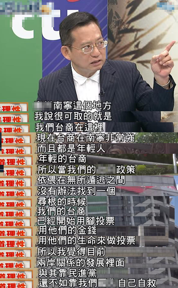 臺灣的人才面臨這樣的窘境,逼不得已離開臺灣,到大陸尋找新的生機。正如下面這位嘉賓所言,“當我們的政策依偎在無所遁逃之間,沒有辦法找到尋根的時候,我們的臺商已經(jīng)開始用腳投票,兩岸關(guān)系發(fā)展里面,與其靠民進黨,不如靠我們自己自救!
