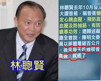 這兩位近來(lái)因?yàn)閸u內(nèi)香蕉過(guò)剩滯銷的問(wèn)題被整得一個(gè)頭兩個(gè)大,其中“主委”林聰賢為了幫忙推銷,不僅說(shuō)“香蕉是會(huì)快樂(lè)的食物”,還曾在臉譜網(wǎng)上公開(kāi)宣稱香蕉可以預(yù)防高血壓,更夸張的是,林還舉例稱“每天吃香蕉可以減重”……網(wǎng)友對(duì)此質(zhì)疑,這些“療效”根本沒(méi)有醫(yī)學(xué)驗(yàn)證,官員公開(kāi)這么宣傳,算不算假新聞?