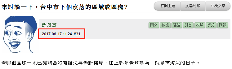 撩叔特別翻出了2017年6月的一個(gè)臺灣網(wǎng)友的帖子,標(biāo)題叫做《來討論下,臺中市下個(gè)沒落的區(qū)域或區(qū)塊》: