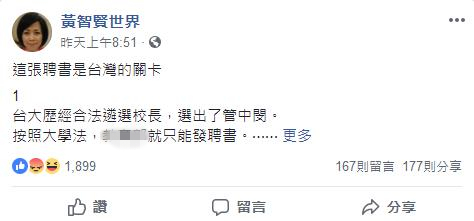而究竟什么才是“有溫度的溝通”?臺灣政治評論人黃智賢24日表示,“拔管案”讓我們清楚看見,民進(jìn)黨當(dāng)局執(zhí)政體制下,把一切納為己有的丑陋嘴臉。臺大歷經(jīng)合法遴選,選出了管中閔,按照“大學(xué)法”,“教育部”就只能發(fā)聘書。沒有第二條路。葉俊榮除了發(fā)聘書給管中閔以外,找誰都沒用。臺大是臺灣民主的最后試金石。退此一步,已無民主。臺大,要堅(jiān)持到底。