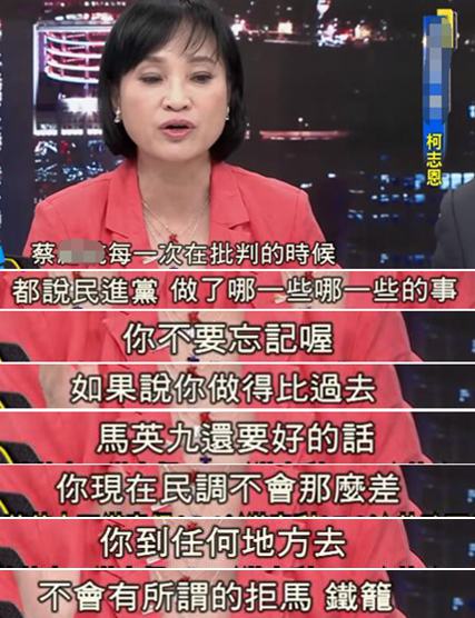 國民黨民代柯志恩則表示,蔡英文每次批判馬英九和國民黨時,都說民進(jìn)黨做了很多事,但“如果你做的比馬英九還要好的話,你現(xiàn)在民調(diào)不會這么差,你去任何地方也不會有拒馬和鐵籠”!