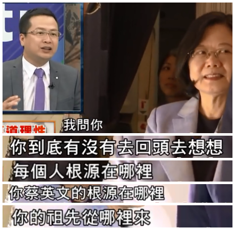 前馬辦副秘書長羅智強在節(jié)目中質(zhì)問蔡英文,你就沒想過自己的祖先從哪來嗎?