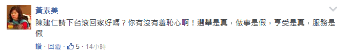 而以民進(jìn)黨一貫的作風(fēng),在出了事之后,也絕不會這么輕易認(rèn)輸投降。果不其然,就在昨天,陳建仁于臉譜網(wǎng)貼文致歉,還提到自己沒有防災(zāi)職權(quán),以求避免跟當(dāng)年薛香川同樣的下場?上У氖,網(wǎng)友對此并不買賬,甚至紛紛吐槽“這種行徑很惡劣你知道嗎?”“以前罵別人罵得很過癮,現(xiàn)在是現(xiàn)世報!”