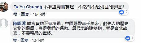 更多的網(wǎng)友則是覺得民進(jìn)黨當(dāng)局此舉有陰謀,最有可能的就是準(zhǔn)備“偷梁換柱”、“盜賣珍寶”,為此還有臺灣網(wǎng)友煞有其事的力勸民進(jìn)黨:不準(zhǔn)盜賣中華珍寶,“不然對不起列祖列宗”!