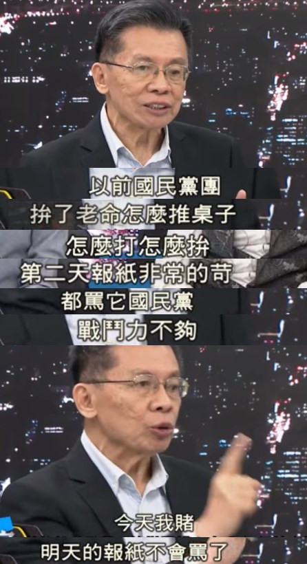 沈富雄評論稱,以前國民黨杯葛,不管多激烈都要被罵,戰(zhàn)斗力不夠;不過這一次,國民黨“醒過來了”。