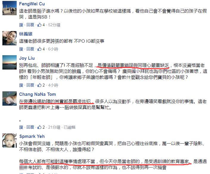 但臺(tái)灣網(wǎng)友對(duì)這樣的處理結(jié)果顯然不能茍同,“這是霸凌欸!”、“老師是在鼓勵(lì)學(xué)生霸凌嗎”、“這不是經(jīng)驗(yàn)不足,是價(jià)值觀嚴(yán)重錯(cuò)誤與同理心嚴(yán)重缺乏”、“完全不能接受,好心疼那個(gè)孩子”、“明明老師員額減少那么多,質(zhì)量卻沒(méi)提升”……