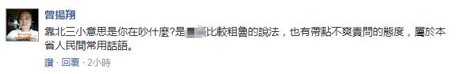 不過(guò),檢察官卻替洪女解釋了下,稱其罵人詞語(yǔ)中“靠北”,實(shí)則代表不屑他人叫苦或抱怨,而“三小”則是臺(tái)語(yǔ)的“什么”的意思,所以從臺(tái)語(yǔ)翻譯過(guò)來(lái)“靠北三小”的實(shí)際意思為“吵什么吵”,沒(méi)有侮辱的意思,因此不起訴洪女。