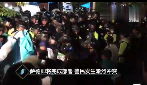 當(dāng)?shù)貢r(shí)間9月6日深夜,距離駐韓美軍薩德系統(tǒng)部署地點(diǎn)星州高爾夫球場(chǎng)最近的韶成里村口,大批民眾集結(jié),封鎖道路,抵抗即將于7日凌晨部署的薩德系統(tǒng)剩余四臺(tái)發(fā)射車。韓國(guó)警方出動(dòng)大量警力,試圖沖破民眾封鎖道路,現(xiàn)場(chǎng)爆發(fā)大規(guī)模沖突。(央視新聞客戶端)