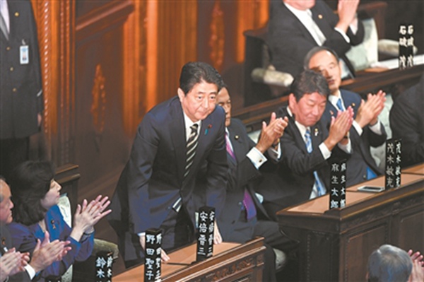 日本國(guó)會(huì)眾參兩院1日舉行首相指名選舉,自民黨總裁安倍晉三當(dāng)選日本第98任首相。安倍當(dāng)選后立即組建新內(nèi)閣,今年10月大選前的內(nèi)閣成員全部留任。(新華日?qǐng)?bào))