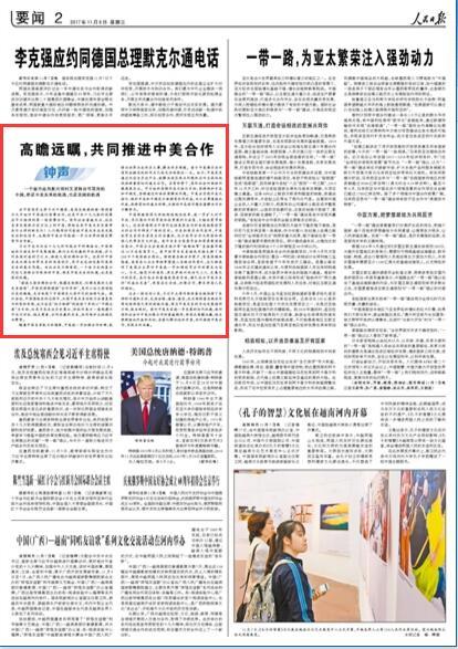 人民日報鐘聲:高瞻遠(yuǎn)矚 共同推進(jìn)中美合作