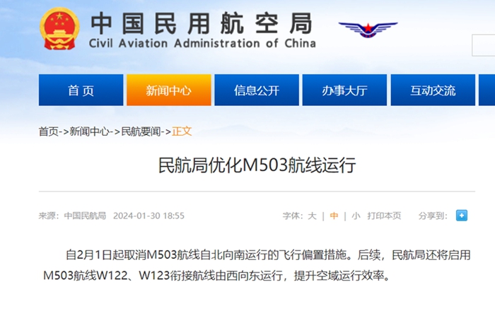 民航局1月30日宣布,自2月1日起取消M503航線自北向南飛行偏置和啟用M503航線W122、W123銜接航線由西向東運(yùn)行。就是這樣一則不足百字的消息,卻在島內(nèi)引起不小“轟動”。