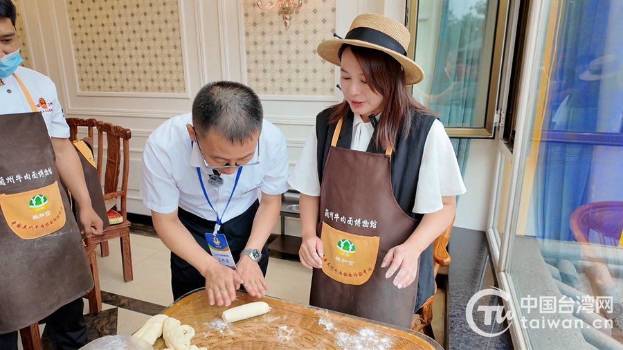 圖為蘭州牛肉面師傅現(xiàn)場教臺灣青年制作拉面。(中國臺灣網(wǎng)記者 李鑫 攝)