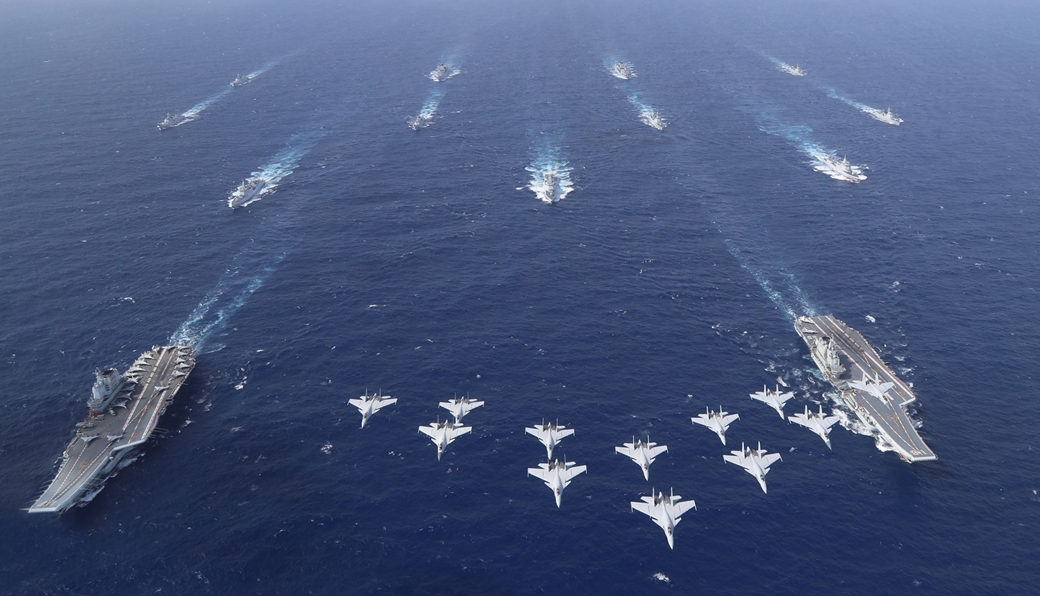 解放軍雙航母編隊(duì)。(圖片取自網(wǎng)絡(luò))