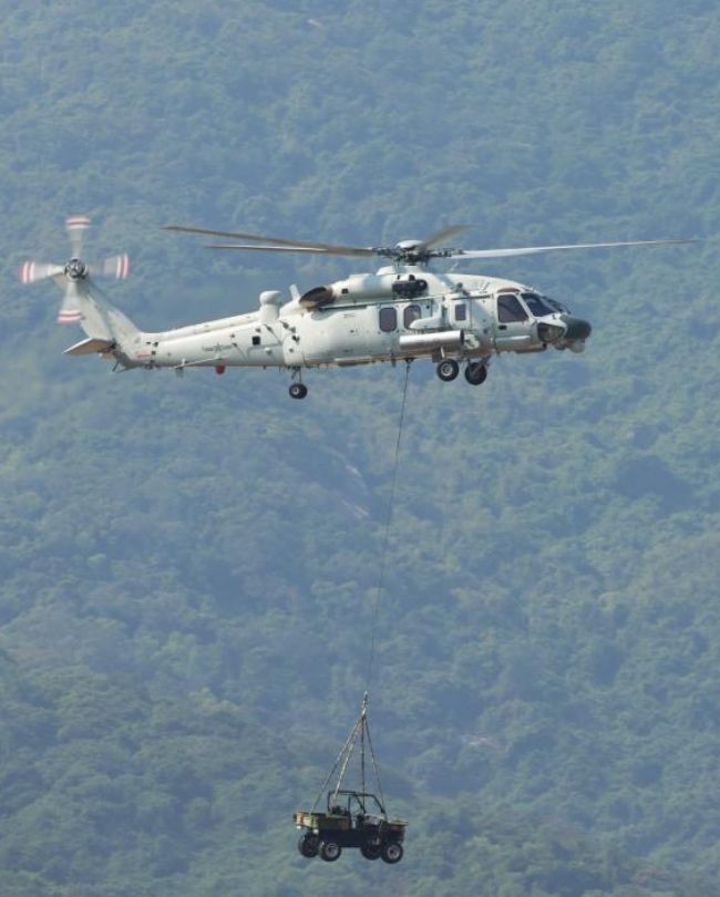 艦載型直-20的出現(xiàn)標(biāo)志著中國海軍在艦載直升機(jī)領(lǐng)域取得重大突破,其機(jī)身兩側(cè)短翼,可掛裝機(jī)炮吊艙,也可掛裝魚雷,執(zhí)行反潛和針對(duì)海陸目標(biāo)進(jìn)行火力支援的任務(wù)。在表演環(huán)節(jié),海軍版直-20掛裝一輛輕型突擊車,吸引現(xiàn)場(chǎng)觀眾不住按快門。在實(shí)戰(zhàn)中,當(dāng)臺(tái)軍看到直-20時(shí),可能意味著臺(tái)?沼颉⒑S蜃鲬(zhàn)已告結(jié)束,登陸作戰(zhàn)已經(jīng)開始。