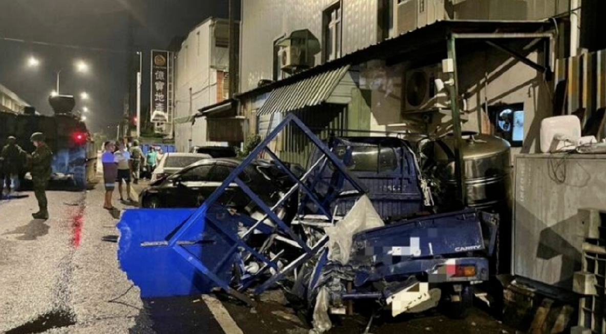 臺軍戰(zhàn)車撞擊民用車輛。(圖片取自網(wǎng)絡(luò))