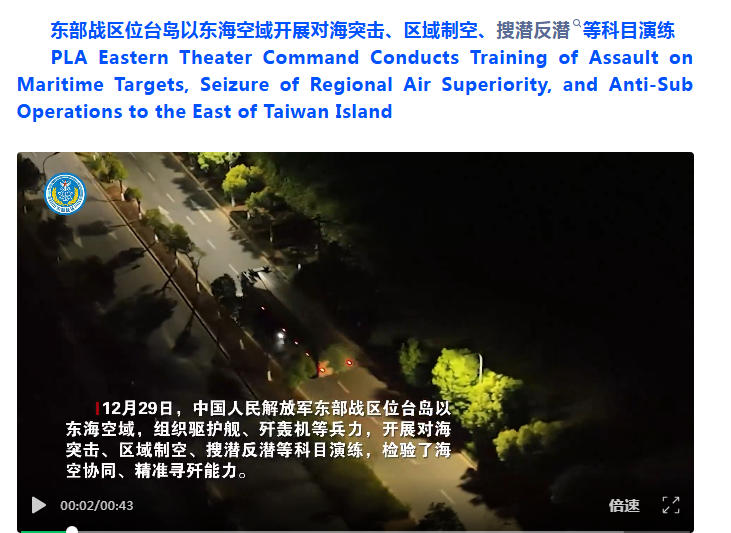 東部戰(zhàn)區(qū)發(fā)布視頻,含英文公告。(圖片來源:東部戰(zhàn)區(qū))