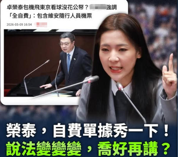 藍(lán)營(yíng)追問(wèn)卓榮泰“自費(fèi)”憑證。(圖片取自臺(tái)媒)