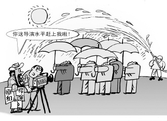 日前有網(wǎng)友發(fā)微博稱,四川樂(lè)山用水槍制造領(lǐng)導(dǎo)冒雨視察工作的場(chǎng)景,并附有現(xiàn)場(chǎng)照片。微博涉及的樂(lè)山高新技術(shù)產(chǎn)業(yè)開(kāi)發(fā)區(qū)作出回應(yīng)稱,該微博反映的場(chǎng)景確有其事,但并非是視察工作,而是拍攝制作宣傳片,“冒雨工作”是拍攝機(jī)構(gòu)創(chuàng)意(9月16日《京華時(shí)報(bào)》)。