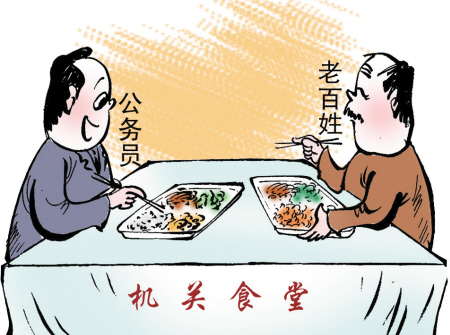 機(jī)關(guān)食堂只有對(duì)外開放,讓老百姓監(jiān)督,才能剎住奢侈之風(fēng),或者說(shuō)才能還原真相。盡管機(jī)關(guān)食堂開放會(huì)令一部分公務(wù)員不滿意,也給管理上帶來(lái)挑戰(zhàn),但是能換來(lái)更好的社會(huì)效果。因此,不妨把推進(jìn)機(jī)關(guān)食堂對(duì)外開放,作為政府自身改革、群眾路線教育實(shí)踐活動(dòng)的一部分。還需要指出的是,機(jī)關(guān)食堂對(duì)外開放貴在堅(jiān)持、貴在長(zhǎng)久,筆者期待更多百姓能嘗嘗“公家飯”。(馮海寧)
