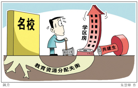 “學(xué)區(qū)房熱”早已不是新聞,而是和教改相伴相生,改革力度愈大,學(xué)區(qū)房愈熱。教育部要求,到2015年,19個(gè)大城市所有縣區(qū)實(shí)行劃片就近入學(xué),100%的小學(xué)劃片就近入學(xué);90%以上的初中實(shí)現(xiàn)劃片入學(xué)。倘若改革順利進(jìn)行,學(xué)區(qū)房的瘋狂僅僅是開(kāi)始而已。一方面是政策出臺(tái)力圖扭轉(zhuǎn)教育資源分配不公的現(xiàn)狀,另一方面卻是隨之而來(lái)的“學(xué)區(qū)房熱”制造新的不公,這種尷尬無(wú)疑極大消解了改革的初衷。