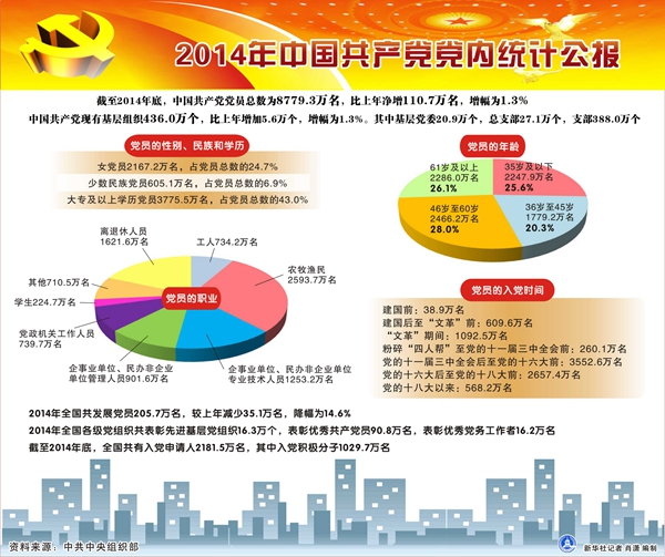 圖表:2014年中國共產(chǎn)黨黨內(nèi)統(tǒng)計(jì)公報(bào) 新華社記者 肖瀟 編制