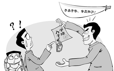 不過(guò),先別著急拍板子,有意思的還在后面。經(jīng)媒體報(bào)道后,該校校長(zhǎng)出面解釋?zhuān)@“完全是一場(chǎng)誤會(huì)”,是個(gè)別班主任用詞不謹(jǐn)慎,將“自愿購(gòu)買(mǎi)”改為“需要購(gòu)買(mǎi)”,導(dǎo)致家長(zhǎng)誤解。這真的是一場(chǎng)建立在“誤會(huì)”之上的“誤解”?在“否則不能入學(xué)”的挾持下,有幾個(gè)家長(zhǎng)敢選擇不“自愿”?如此辯解,實(shí)在沒(méi)有半點(diǎn)技術(shù)含量。難怪有網(wǎng)友質(zhì)疑,不買(mǎi)“手表手機(jī)”就不辦理入學(xué)手續(xù),教育的指針是不是跑偏了呢? (于珍 文 薛紅偉 繪)