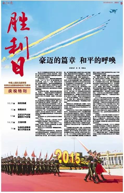 為閱兵喝彩,為中國(guó)點(diǎn)贊。9月3日,以鮮艷的五星紅旗為共同的形象,以“愛我中華、報(bào)效祖國(guó)”為共同的語言,以大寫的“中國(guó)人”為共同的名字,億萬中華兒女的心緊緊地凝聚到了一起。人民為之歡呼,祖國(guó)為之自豪,歷史為之欣慰,勝利日的閱兵寫下了一首豪邁的詩(shī)篇,奏響了一曲雄渾的軍威國(guó)威交響曲,必將在中華民族光輝的史冊(cè)中留下輝煌的新篇章。(作者:姜范 韓秉志)