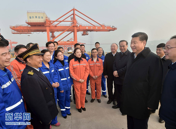 重慶是“一帶一路”建設(shè)和長(zhǎng)江經(jīng)濟(jì)帶發(fā)展的關(guān)鍵交叉點(diǎn),應(yīng)該在經(jīng)濟(jì)新常態(tài)發(fā)展中有更加突出的擔(dān)當(dāng)。長(zhǎng)江經(jīng)濟(jì)帶旨在依托黃金水道打造中國(guó)經(jīng)濟(jì)新支撐帶。要讓其成為充分體現(xiàn)國(guó)家綜合經(jīng)濟(jì)實(shí)力、積極參與國(guó)際競(jìng)爭(zhēng)與合作的內(nèi)河經(jīng)濟(jì)帶,需要發(fā)揮長(zhǎng)江黃金水道的獨(dú)特作用,構(gòu)建現(xiàn)代化綜合交通運(yùn)輸體系,推動(dòng)沿江產(chǎn)業(yè)結(jié)構(gòu)優(yōu)化升級(jí),打造世界級(jí)產(chǎn)業(yè)集群,培育具有國(guó)際競(jìng)爭(zhēng)力的城市群。作為長(zhǎng)江經(jīng)濟(jì)帶的西部中心樞紐,重慶要大力提升長(zhǎng)江上游航運(yùn)中心、科教和金融中心、物流中心、信息中心功能,不斷增強(qiáng)其作為“一帶一路”與長(zhǎng)江經(jīng)濟(jì)帶的戰(zhàn)略支撐能力。