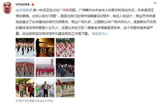 針對(duì)廣場(chǎng)舞,網(wǎng)友“whoolee”認(rèn)為:商業(yè)廣場(chǎng)太多,公園等公共廣場(chǎng)休閑太少,適宜群眾不擾民的集體活動(dòng)場(chǎng)所更是少之又少。