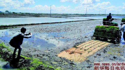 5月下旬,以盛產(chǎn)五常大米聞名全國的黑龍江省五常市正值水稻插秧季節(jié)。在五常市二河鄉(xiāng)農(nóng)民的繁忙身影中有一個來自南方的城里人格外顯眼。雖然不種地,但他早上三四點鐘天剛一亮就到田里,經(jīng)常拿著手機拍照、攝像,記錄“地是怎么種的,米是怎么出的”。