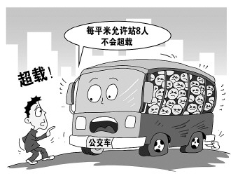 根據(jù)1987年國(guó)家頒布的《機(jī)動(dòng)車安全運(yùn)行技術(shù)條件》,公交車每平方米允許站8人。這個(gè)標(biāo)準(zhǔn)在25年前實(shí)施效果如何不得而知,但依照今天人們的普遍身材來看,可謂是望塵莫及。曾有人做過實(shí)驗(yàn),在平地上畫個(gè)1平方米的正方形,讓8位有胖有瘦的男女站進(jìn)去,彼此相互抱團(tuán)才勉強(qiáng)站立。而在公交車上,乘客往往都是大包小包,又不可能親密無“間”,肯定有人被自然擠出圈外,因此公交車再擠也不會(huì)超載。