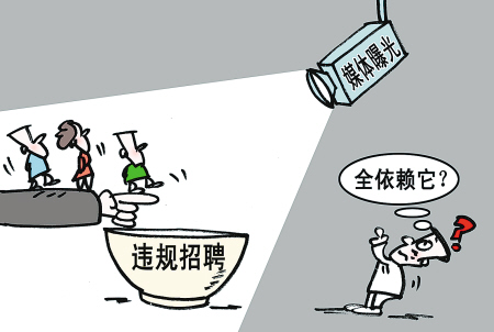 也就是說,如果沒有“網友曝光”,沒有媒體的跟進和輿論的監(jiān)督,這些違規(guī)招聘可能至今仍未曝出。實際上,不僅僅是這幾個案例,公眾能看到的違規(guī)招聘丑聞,很多是由網友發(fā)覺和媒體曝光的。