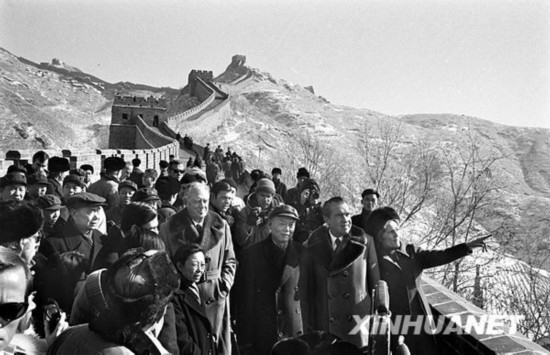 1972年2月24日,美國(guó)總統(tǒng)尼克松和夫人等游覽長(zhǎng)城。新華社發(fā)