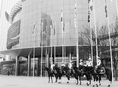 韓國騎警在核安全峰會主會場外執(zhí)勤。