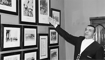 圖為米納豪斯飯店大堂值班經(jīng)理哈米德·努巴維在介紹1943年11月中美英三國首腦會晤情況。記者 劉水明攝