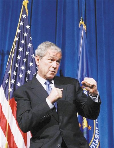 美國(guó)人甚至還為此造了一個(gè)新詞:Bushism。這個(gè)詞有兩種意思:一是指布什擔(dān)任總統(tǒng)期間的政府政策,布什主義;二可以譯成布什體,即小布什(有時(shí)還包括他的父親老布什)在公開演講中常出現(xiàn)的非常規(guī)的單詞、短語(yǔ)、發(fā)音、用詞不當(dāng)、表述錯(cuò)誤、語(yǔ)義或者語(yǔ)法錯(cuò)誤。
