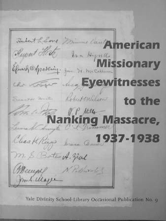 資料圖片:耶魯大學神學院圖書館編寫的《美國傳教士目擊的南京大屠殺》。
