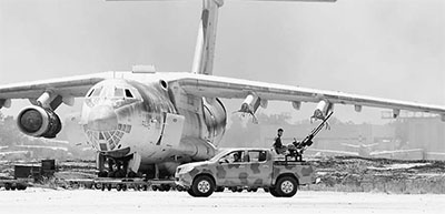 7月21日,利比亞民兵武裝在首都的黎波里國(guó)際機(jī)場(chǎng)一帶的激戰(zhàn)已經(jīng)進(jìn)入第九天。機(jī)場(chǎng)內(nèi)超過90%的飛機(jī)以及包括航空控制塔在內(nèi)的多處重要設(shè)施遭到損毀。此時(shí)距離2011年初利比亞爆發(fā)大規(guī)模暴力沖突并導(dǎo)致內(nèi)戰(zhàn)已有三年。