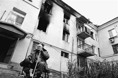 烏克蘭危機(jī)爆發(fā)以來(lái),烏東部地區(qū)民眾生活受到嚴(yán)重影響。圖為日前頓涅茨克的一名老人坐在被毀壞的建筑前企盼國(guó)家早日恢復(fù)和平。