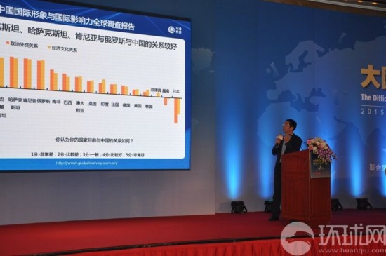環(huán)球輿情調(diào)查中心在環(huán)球時報年會現(xiàn)場發(fā)布調(diào)查報告(攝影記者:趙衍龍)