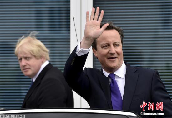當(dāng)?shù)貢r間2015年4月22日,英國貝德福德,英國首相卡梅倫與倫敦市長鮑里斯參觀當(dāng)?shù)匾患彝袃核,為大選造勢。
