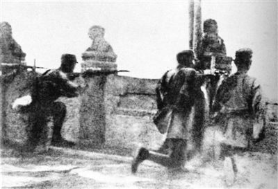 中國軍隊在盧溝橋上還擊日軍。