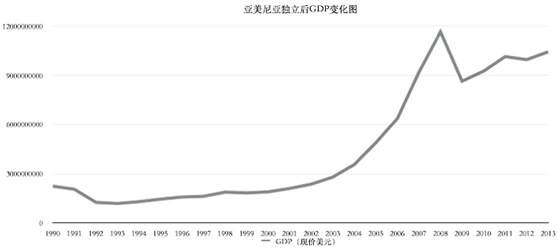 亞美尼亞自然地理情況相對惡劣,國內(nèi)自然資源和能源原料儲量匱乏,在獨立之后受到了較大的經(jīng)濟沖擊。事實上,蘇聯(lián)時代亞美尼亞的工業(yè)產(chǎn)品生產(chǎn)能力僅能滿足自身消費品需求的二成,其余需求都依賴其他加盟共和國支援。轉(zhuǎn)型初期的亞美尼亞尚未從1988年大地震中恢復(fù)過來,加上鄰國封鎖與輸氣管道被炸毀,亞美尼亞經(jīng)歷了連續(xù)五年的惡性通脹與連續(xù)四年的GDP暴跌。2013年GDP總額約104.1億美元,人均GDP為3174美元。亞美尼亞央行在其今年第一季度報告中稱,2015年亞經(jīng)濟增長率將下降至0.4-2%。亞政府之前預(yù)計的2015年亞經(jīng)濟增長率為4.1%,通脹率為4%(±1.5%)。據(jù)亞美尼亞國家統(tǒng)計局數(shù)據(jù)顯示,2015年1月,亞通貨膨脹率為2.5%,與2010年相比,亞通貨膨脹率為27.4%。亞美尼亞穩(wěn)定通脹的壓力仍然較大。亞美尼亞的國家收入中,僑匯收入占比相對較高。2013年亞美尼亞的僑匯收入達到18.7億美元,其中有86%來自俄羅斯。有估計稱,亞美尼亞僑民數(shù)量達到700萬,遠高于國內(nèi)人口。