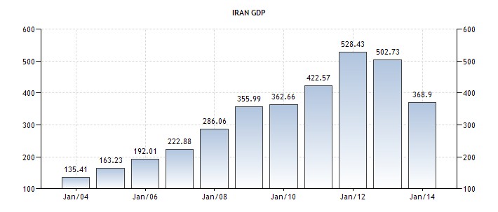 伊朗是亞洲主要的經(jīng)濟(jì)體之一。根據(jù)國際貨幣基金組織的數(shù)據(jù),伊朗2014年國內(nèi)生產(chǎn)總值為5148.21億美元,居世界第23位,亞洲第8位(僅此于中、日、印、韓、印尼、土耳其、沙特);2014年人均國內(nèi)生產(chǎn)總值為4751美元,居世界第100位。據(jù)世界經(jīng)濟(jì)論壇《2014-2015年全球競(jìng)爭力報(bào)告》顯示,伊朗在參與評(píng)估的148個(gè)國家和地區(qū)中排名第83位,在中東地區(qū)排名第10位。