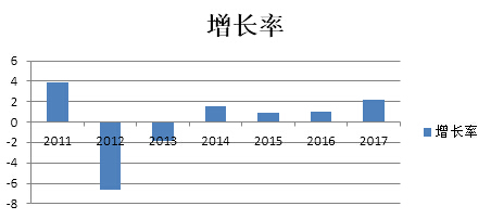 圖二:伊朗2011-2017年GDP年增長率(含預(yù)測(cè))