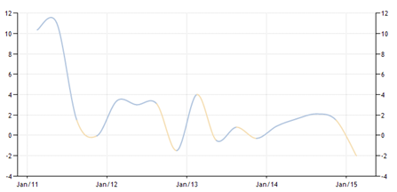 (白俄羅斯2011年1月-2015年1月GDP增長(zhǎng)曲線圖)