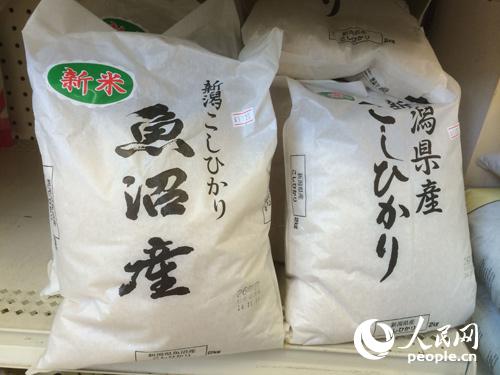 舊金山地區(qū)圣馬刁縣的Suruki Supermarket的經(jīng)理Ken告訴記者,只有上周才從日本進(jìn)口一個(gè)新米品牌。記者注意到包裝袋子上印著“新潟縣魚沼產(chǎn)”。雖然新潟縣的熊肉被禁,大米還是可以進(jìn)口美國(guó)。人民網(wǎng)記者 韓莎莎攝