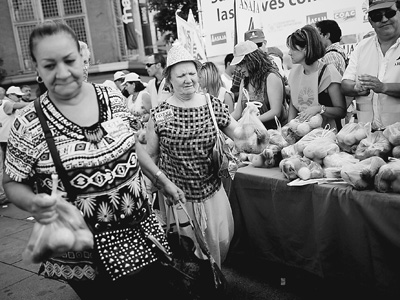 作為對(duì)歐盟制裁的回應(yīng),俄羅斯實(shí)施了針對(duì)歐盟農(nóng)產(chǎn)品的進(jìn)口禁令,使歐盟部分成員國農(nóng)產(chǎn)品生產(chǎn)商遭受損失。圖為在俄羅斯實(shí)施進(jìn)口禁令后,西班牙農(nóng)民將水果發(fā)放給民眾以表達(dá)不滿。