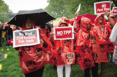 5月7日,華盛頓,民主黨人士舉行集會,反對TPP和TPA