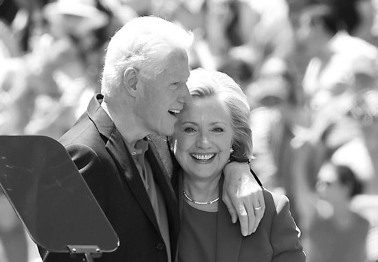 希拉里與克林頓13日在演講活動中秀恩愛。